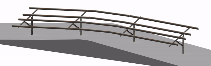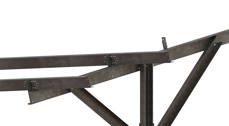 - Patent pending articulating purlins between tables enable installation on sites with complex slope issues, which when combined with post and post bracket adjustment handle up to 15% east-west terrain slopes and undulations